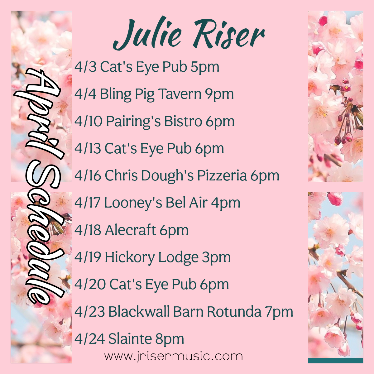 Monthly Schedule for Julie Riser.